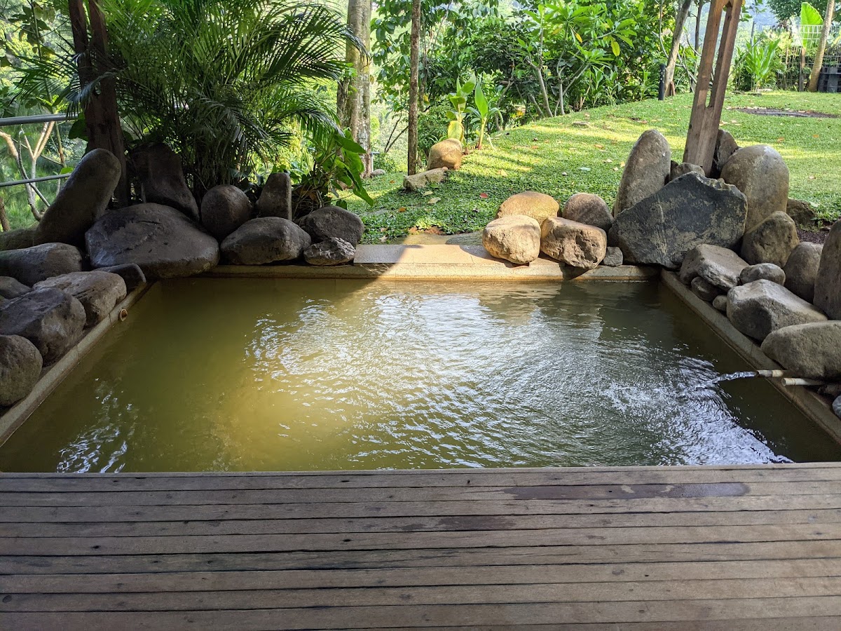 A nice place to have a little get away from Jakarta. Better to go at the afternoon time. Don't forget to make an appointment first. You can order snacks, light meal, mineral water, tea & coffee. They provide equipments (soap, shampoo, towel) and clothes you can use to enjoy the hot spring pool. Better to bring plastic bag to keep your personal needs/stuffs. More to that point, if you wanna go there, it has a rocky road, pick the car wisely. Stay alert and enjoy it